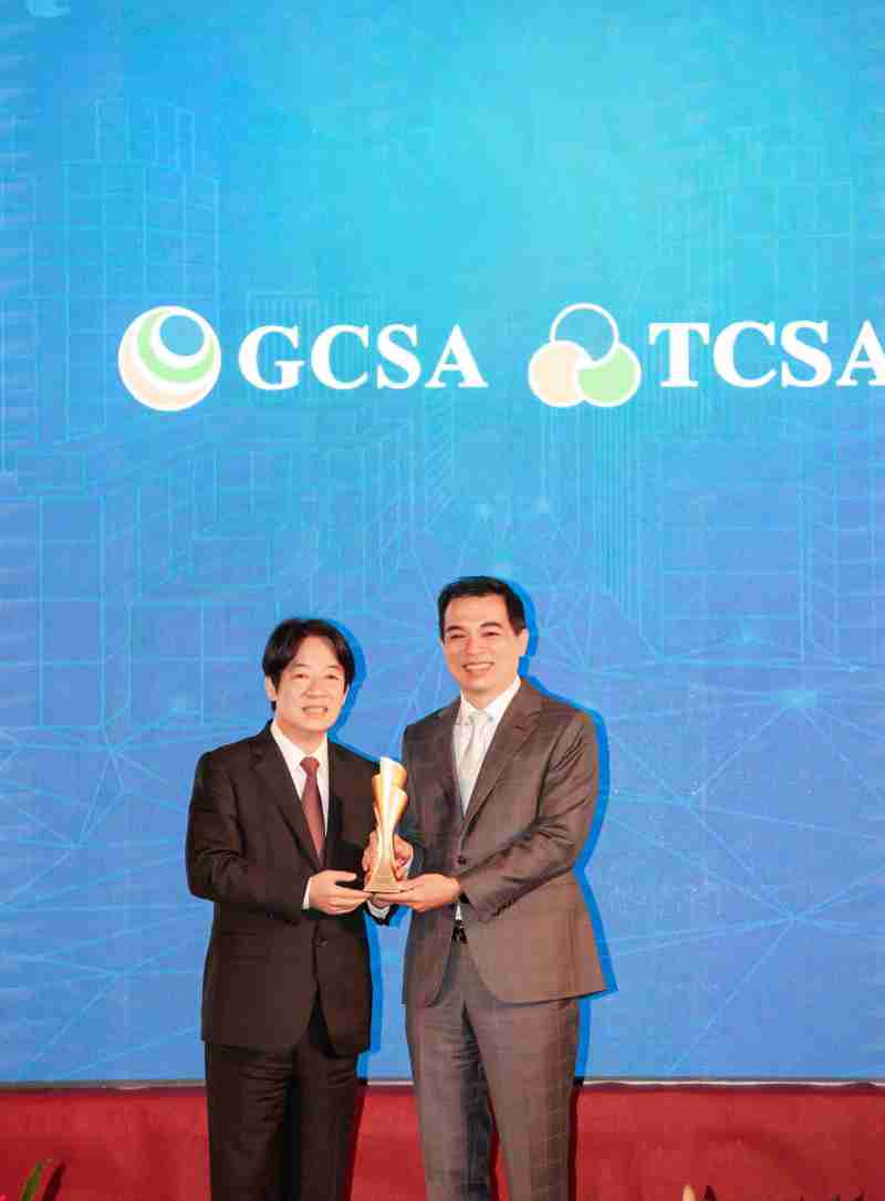 达全方位永续表现获全球永续奖及台湾永续奖肯定,,,由副总统赖清德颁奖 (左),,,万利总经理柯富仁 (右) 代表领奖