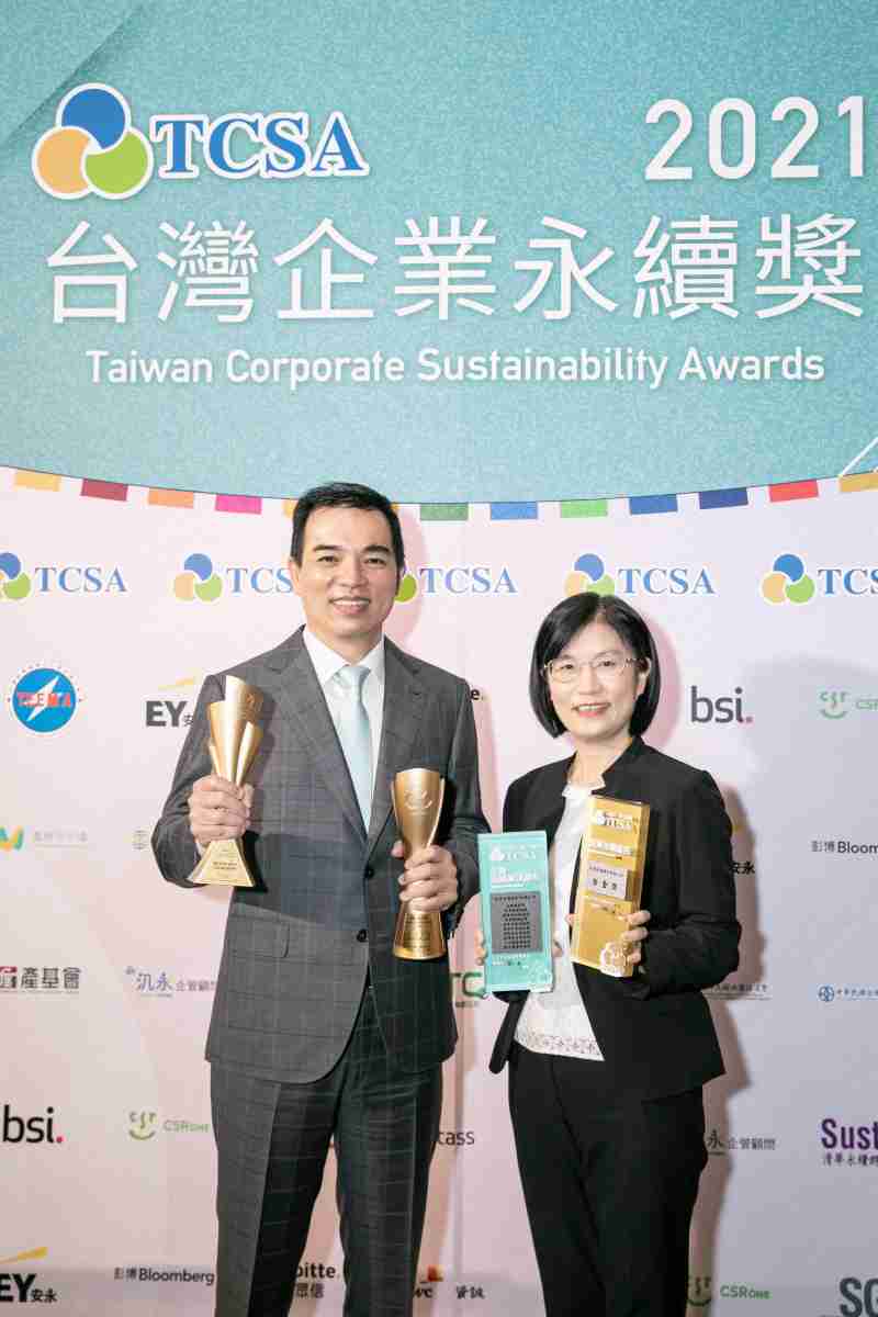 达在台湾永续奖所评比环境、、、、社会、、治理等各面向的永续绩效均获高度肯定 (左:万利光电总经理暨营运长柯富仁,,,右:万利光电永续长古秀华)