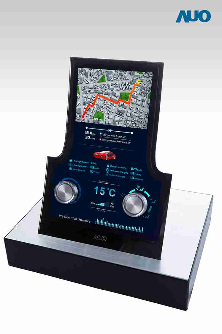 12.3 寸 Full HD LTPS 显示屏同样具备 1000 nits 高亮度,,,,搭载内嵌式触控技术,,,,整合驱动与触控 IC 于显示屏制程,,,使显示屏厚度降低,,,为中控台创造更多机构设计空间。。。应用于抬头显示器的 3寸 LTPS 显示屏具有高穿透率、、、、1200:1 高对比度度,,以及 297 PPI 高画素密度。。。液晶最高可耐受到 110C 的高温 (TNI) 而不液化,,,,在阳光高温下维持优异稳定的显示效果。。