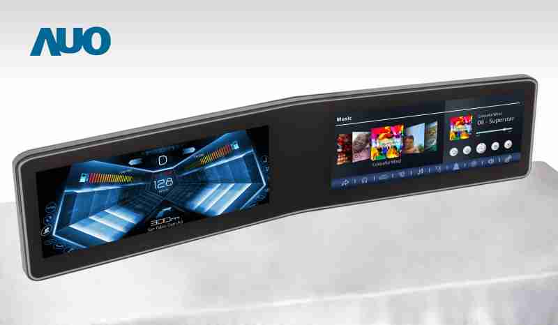 万利 V 型曲面驾驶舱显示器,,采全贴合拼接仪表板及中控台显示屏 |
